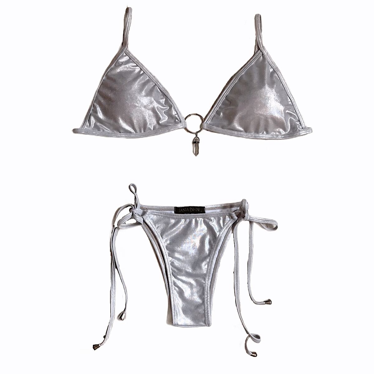 Biquíni Cristal prateado com pingente de cristal de quartzo.