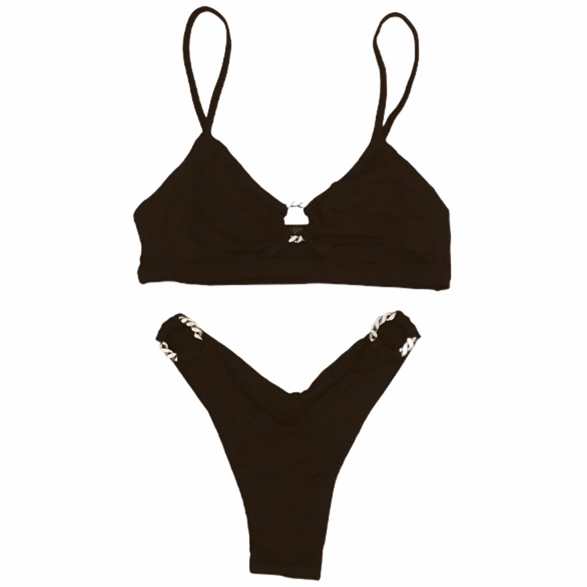 Dica: O conjunto Brasília vai despertar grandes amores em você. Super moderno e estiloso, esse conjunto é perfeito paras as fashionistas de plantão. As argolas do bottom e do top fazem toda diferença, deixando o biquíni PERFEITO. Nada de pretinho básico, aqui você vai arrasar na praia, piscina ou cachoeira.