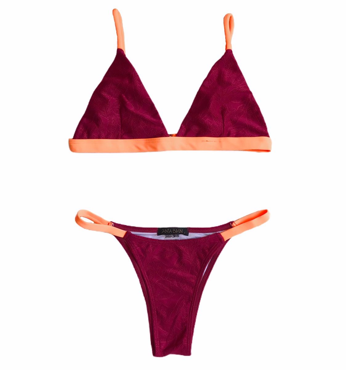 Biquíni Beija-flor vinho com tiras laranja neon