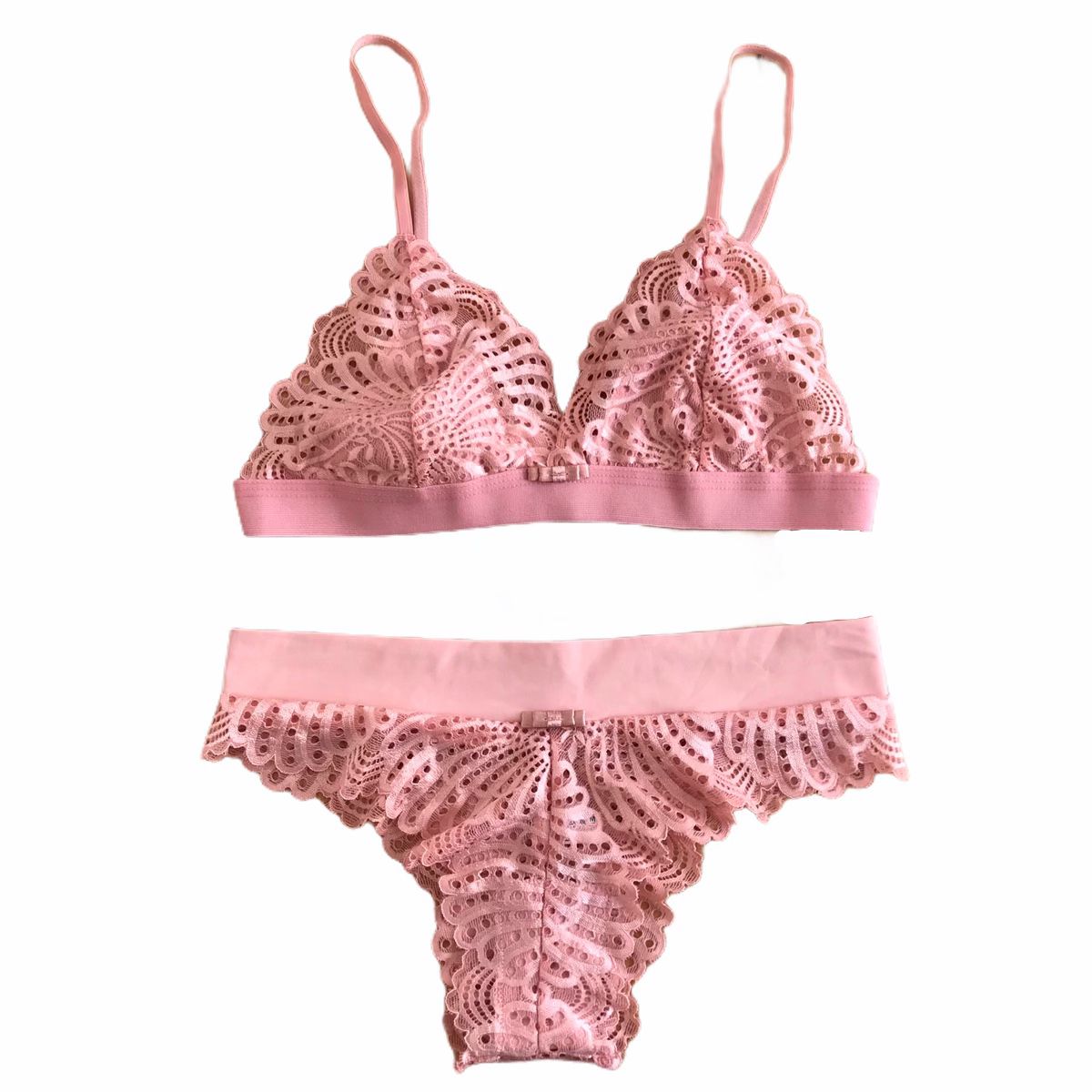 Dica: Esse é um conjunto extremamente confortável desde a renda até a modelagem, renda macia e trabalhada, possui um elástico resistente abaixo dos seios para sustentar, possui forro nos seios 100% algodão, alças ajustáveis e uma cor super feminina e delicada. Sua calcinha possui forro 100% algodão e o melhor de tudo fio duplo, o que torna a calcinha fio extremamente confortável sem incômodo nenhum. Esse conjunto é delicadeza pura, perfeito para você usar no dia-a-dia ou em ocasiões mais especiais.
