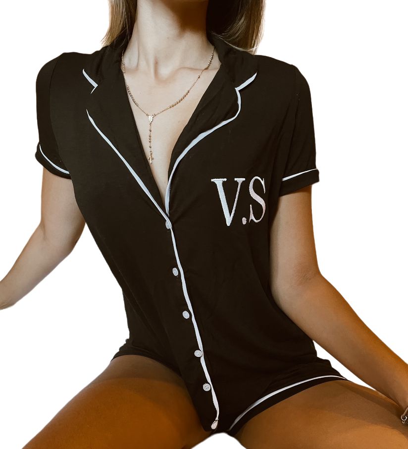 Pijama Ivy curto personalizado com as suas iniciais. Disponível nas cores PRETO E CINZA.