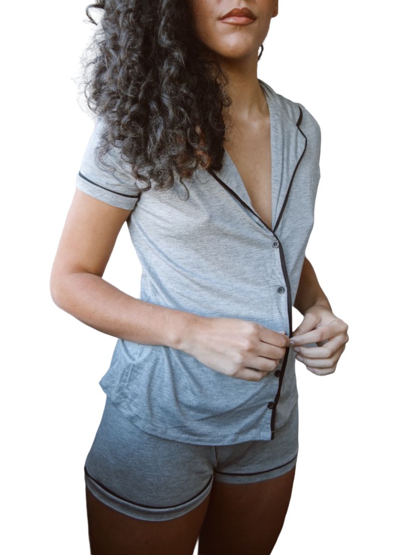 Dica: Moderno e elegante, o pijama Ivy tem estilo americano e é ideal para suas noites mais quentes. Você pode leva-lo para viagens ou até comprar de presente para alguem especial. Elaborado em malha de viscose, ele é super confortável, o que torna o tecido leve e fresco. A camisa possui gola tradicional, abertura de botões frontais e manga curta. O shorts conta com elástico no cós.